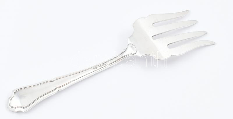 Ezüst(Ag) szervírozó villa, jelzett, h: 22 cm, nettó: 114,1 g