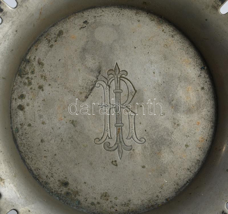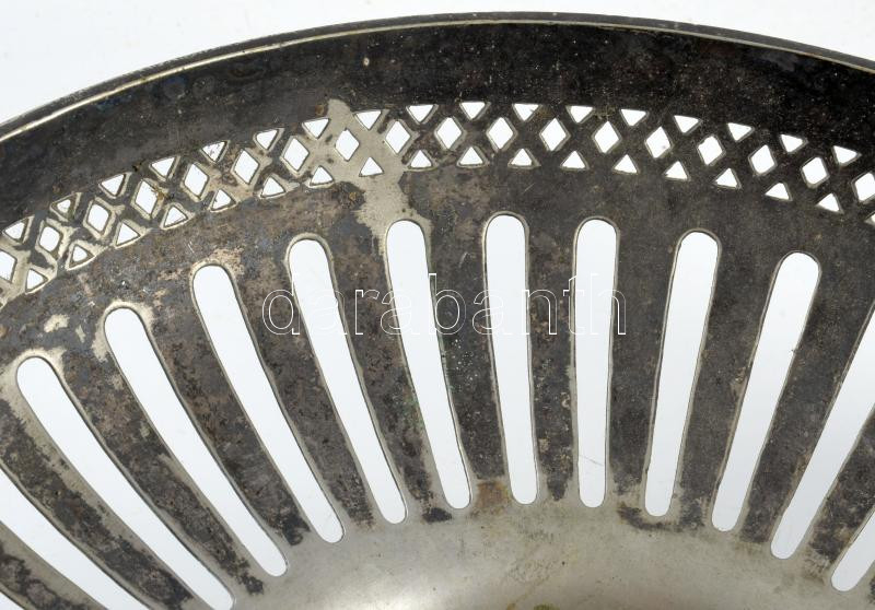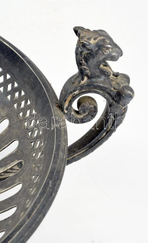 Berndorf Packfong Chian Silver áttört kínáló, jelzett, állatfejes fülekkel, 32x13 cm