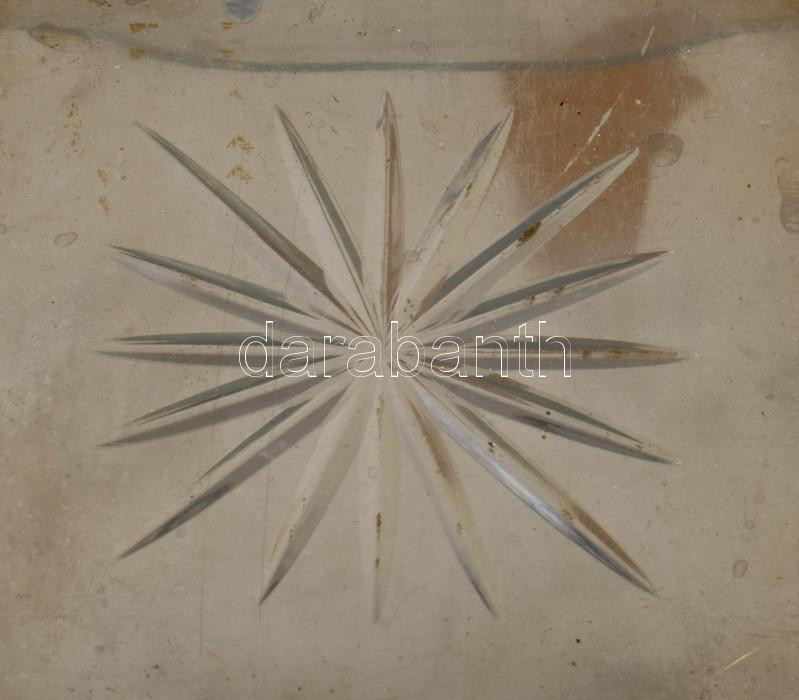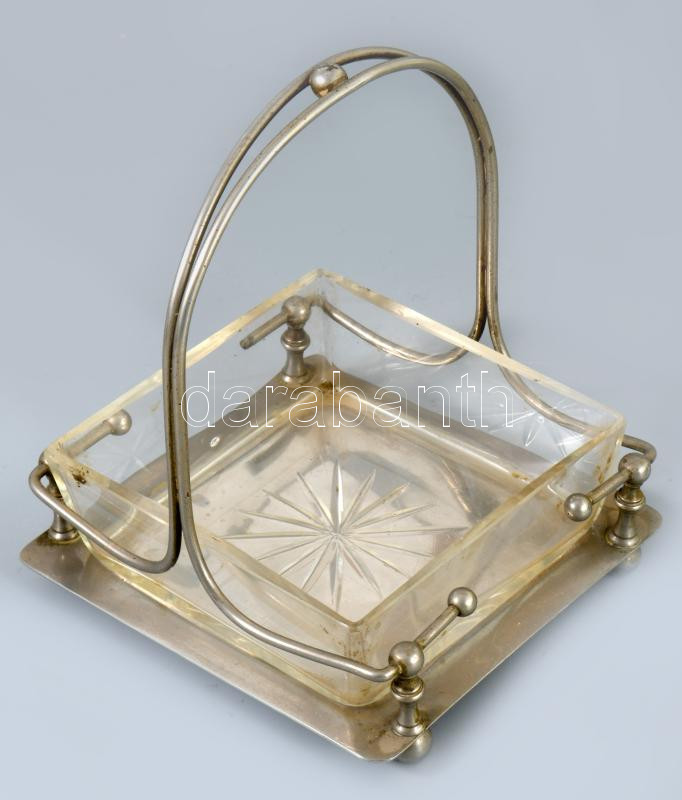 Jugendstil kínáló, üveg betéttel, lepattanással, gömb elem hiánnyal, m: 15,5 cm
