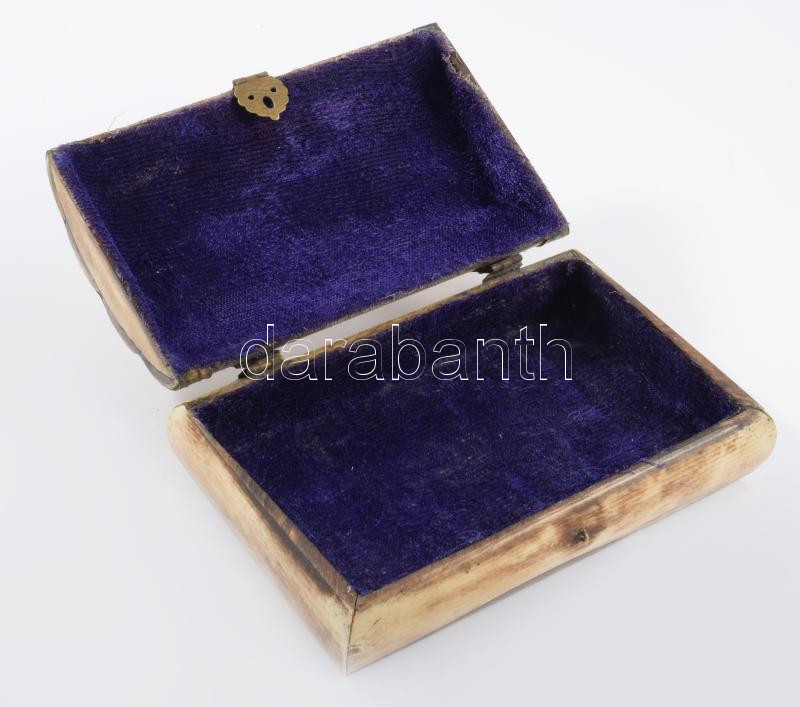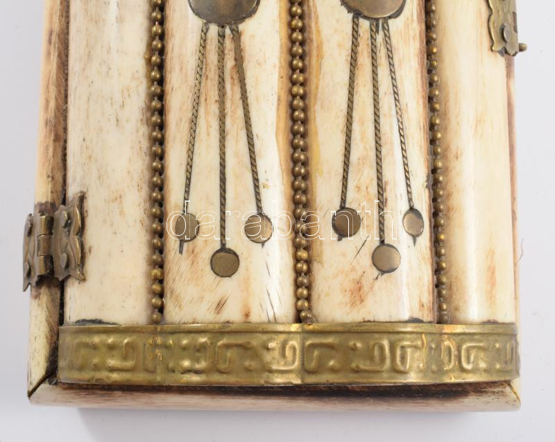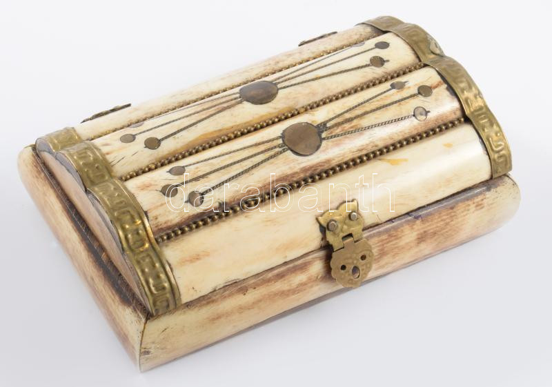 Keleti tevecsont díszdoboz, réz szerelékkel, jó állapotban, 15x10 cm