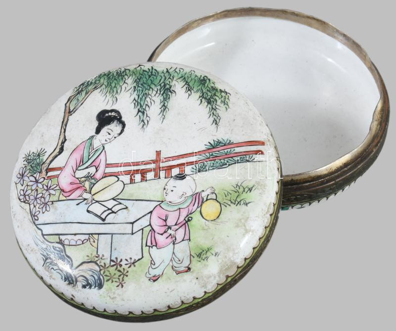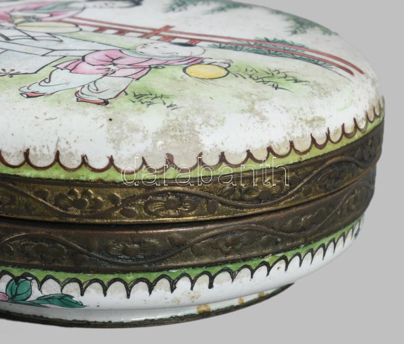 Kínai zománc borítású réz dobozka 8,5 cm / Chinese enameled copper box