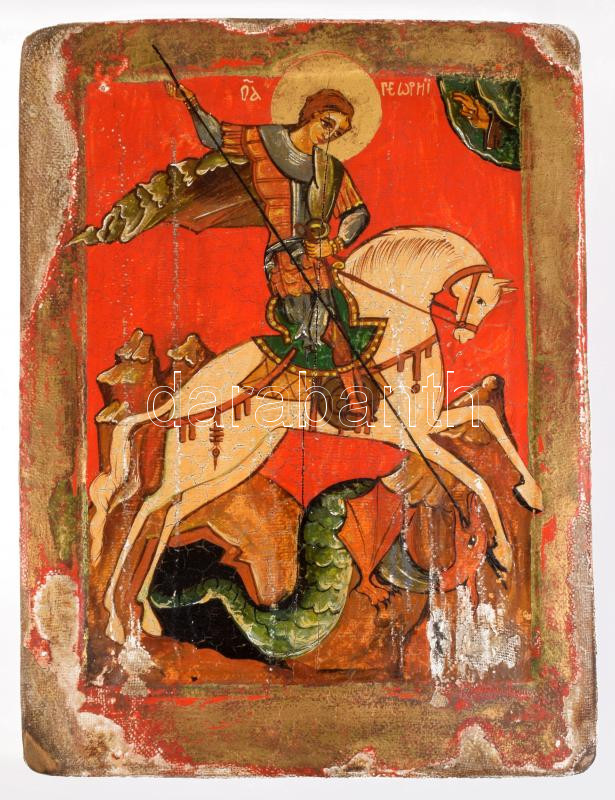 Sárkányölő Szent György - modern kézzel festett ikon, 35x26 cm