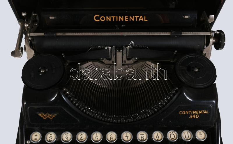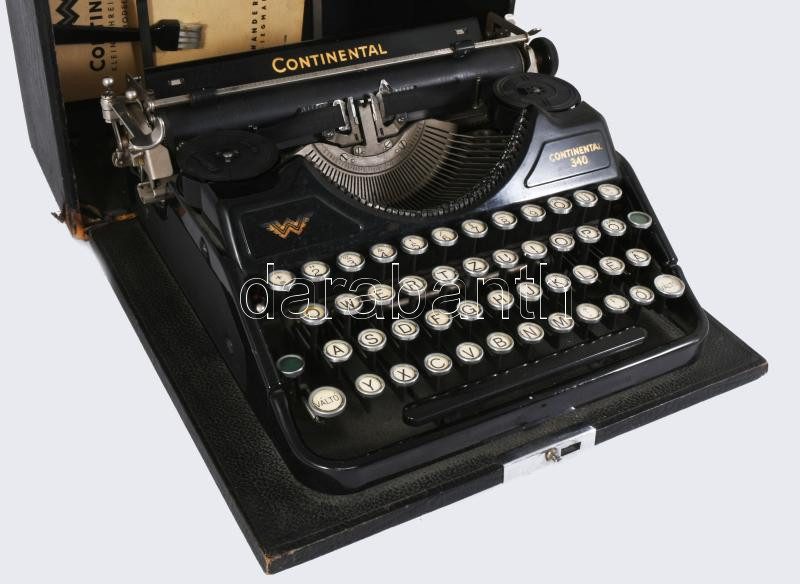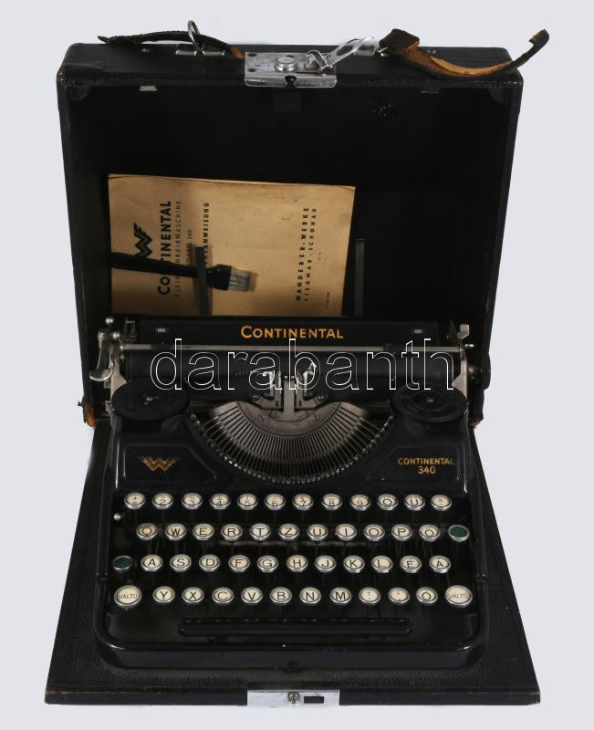 cca 1940 Continental 340 írógép, magyar billentyűzettel, saját dobozában, leírással, tisztítókefével.