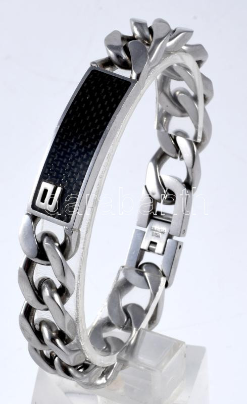 Acél-karbon férfi karkötő, h: 20 cm