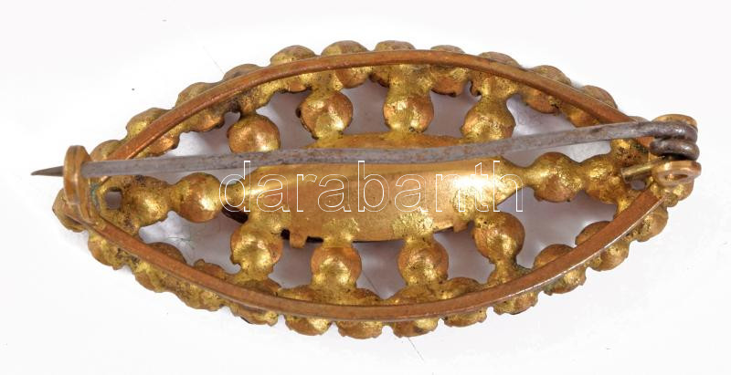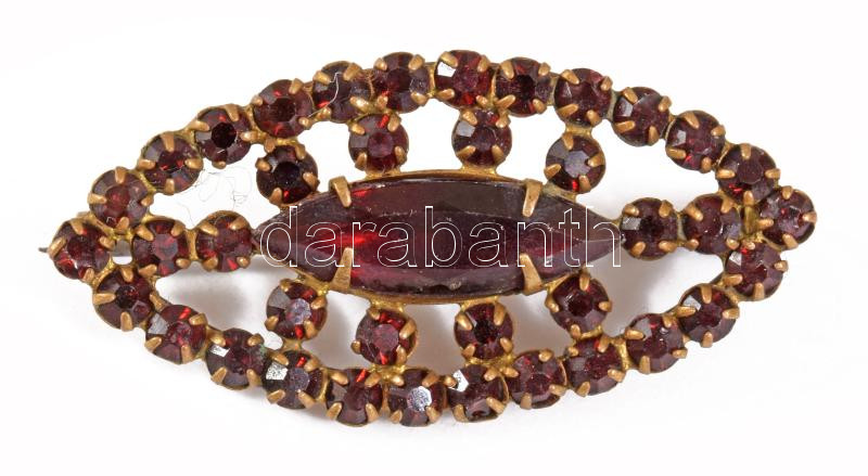Antik bross, vörös kő (gránát?) berakásokkal, h: 4 cm