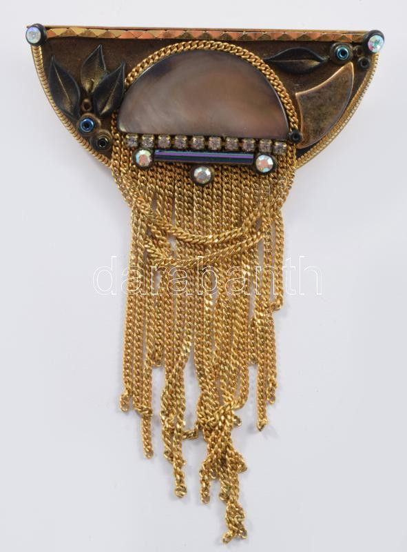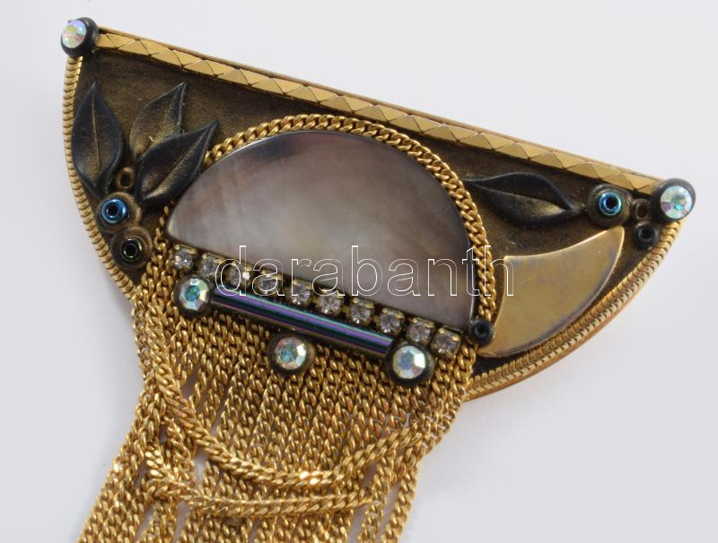 Marena aranyozott bross, jelzett, 8x5 cm