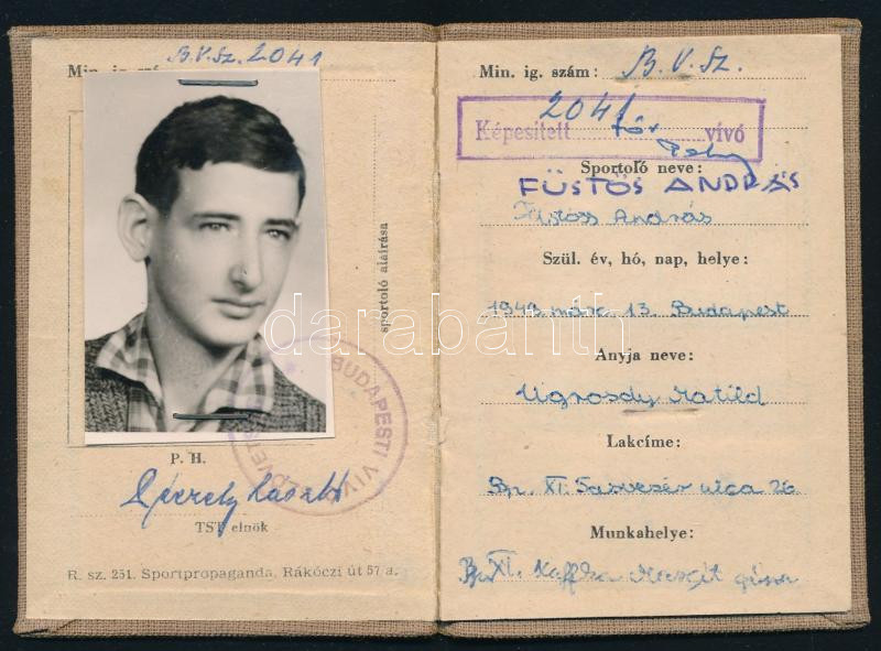 1963 Arcképes vívó igazolvány (Honvéd SE)