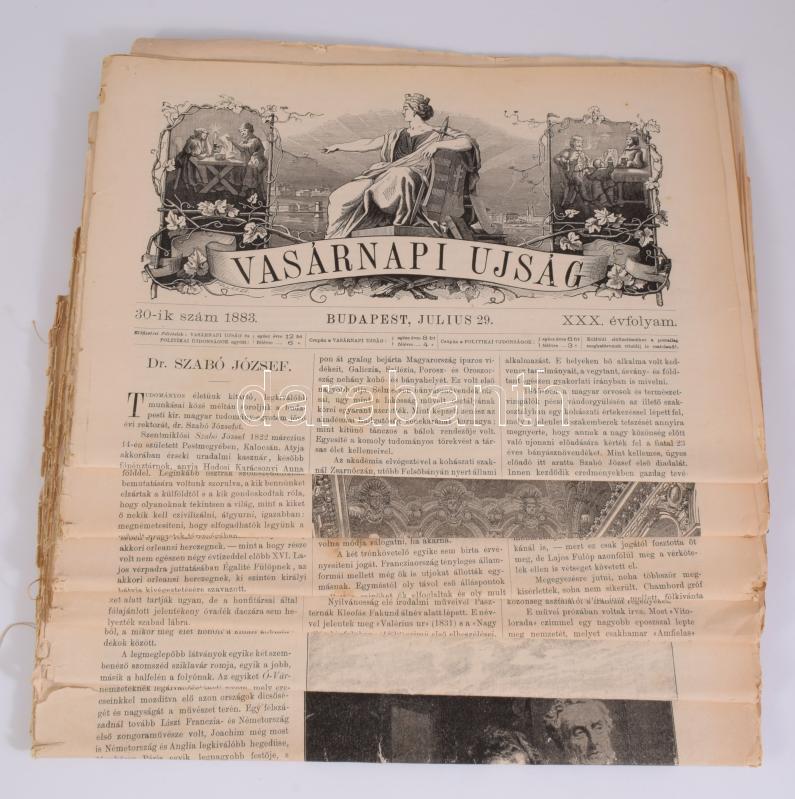 1883 Vasárnapi Ujság XXX. évf. 6 száma (25,26,27,28,29, 30), 1883. jun. 24., julius 1.,8., 15., 22., 29. Változó állapotban.