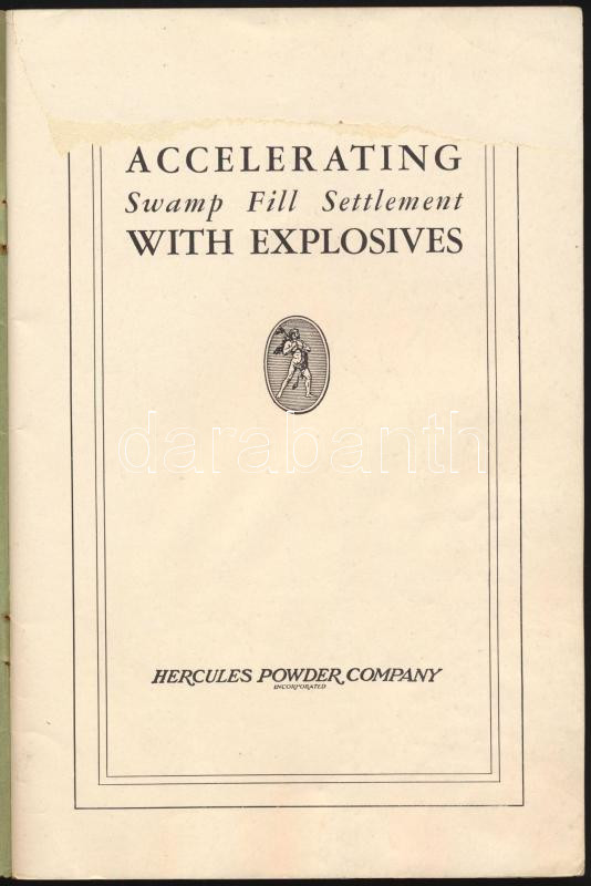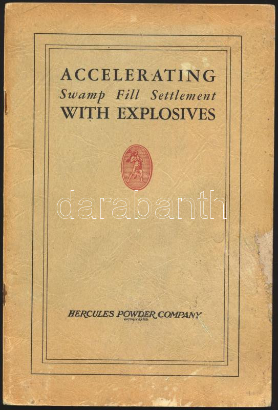1932 Accelerating Swamp Fill Settlement with Explosives. Hercules Powder Company, Inc. Angol nyelvű, fekete-fehér fotókkal illusztrált ismertető kiadvány. Kiadói tűzött papírkötés, kissé viseltes állapotban, a címlap tetején hiánnyal, 84+[4] p.