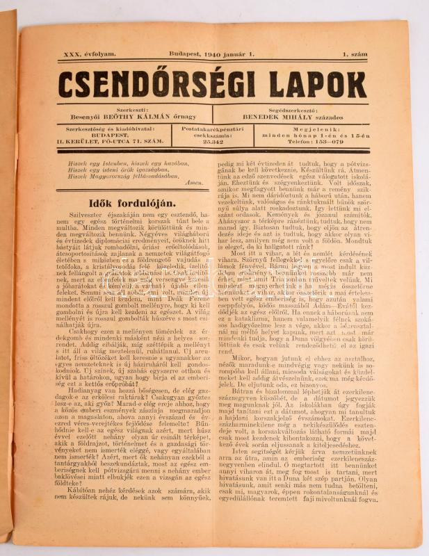 1940 Csendőrségi lapok szerk: Besenyői Beöthy Kálmán, január 1-i száma, Garay borítójával,