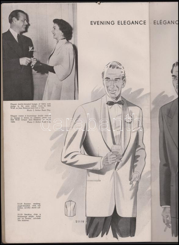 1951 Fashions for Gentlemen. No. 92. Summer 1951. Férfi divatkatalógus (nyár), fekete-fehér és színes illusztrációkkal, angol nyelven. Kiadói papírkötés, kissé sérült, foltos borítóval, helyenként kissé foltos lapokkal, a hátsó borítón firkával.