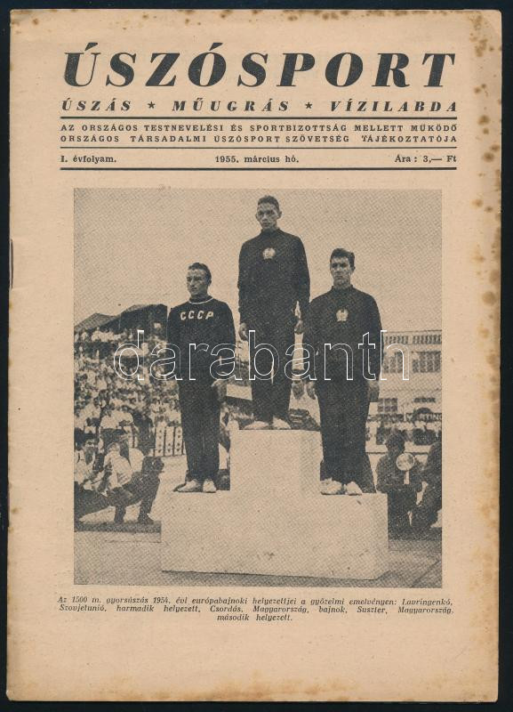 1955 Úszósport, az Országos Testnevelési és Sportbizottság mellett működő Országos Társadalmi Úszósport Szövetség tájékoztatója, I. évfolyam márciusi szám, 31p