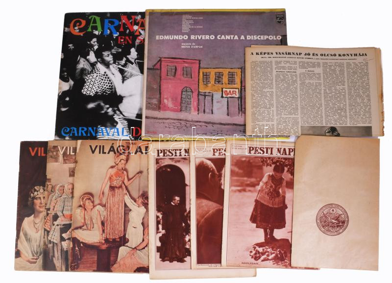 Vegyes papírrégiség tétel, reklámok, újságok a háború előttről + 2 db hanglemez