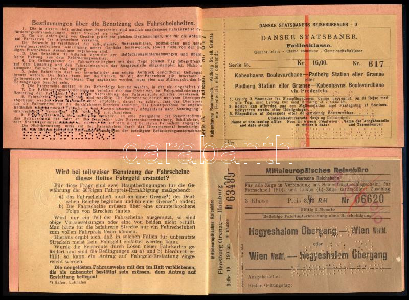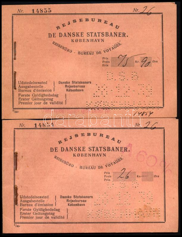 ca 1930 2 db dán államvasutak vonatjegy / Danish railways train tickets