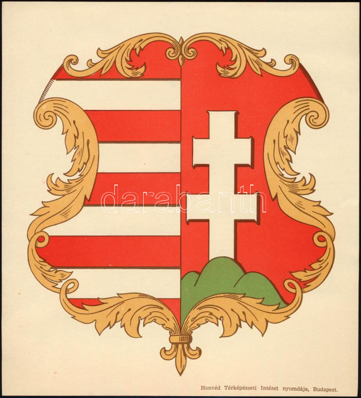 cca 1930 Kossuth-címer, a Honvéd Térképészet Intézet kiadása, 22×20 cm