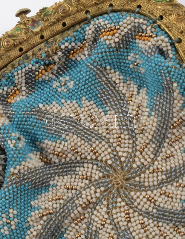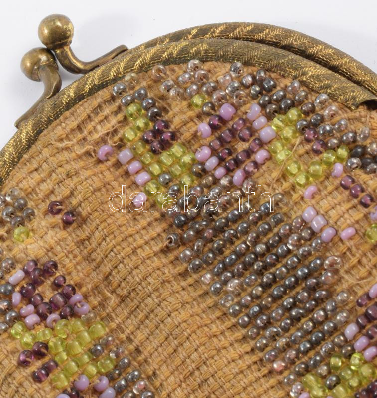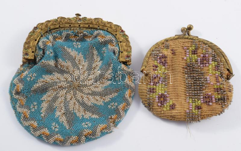2 darab antik gyöngyfűzött aprópénztartó, h. 7-9 cm