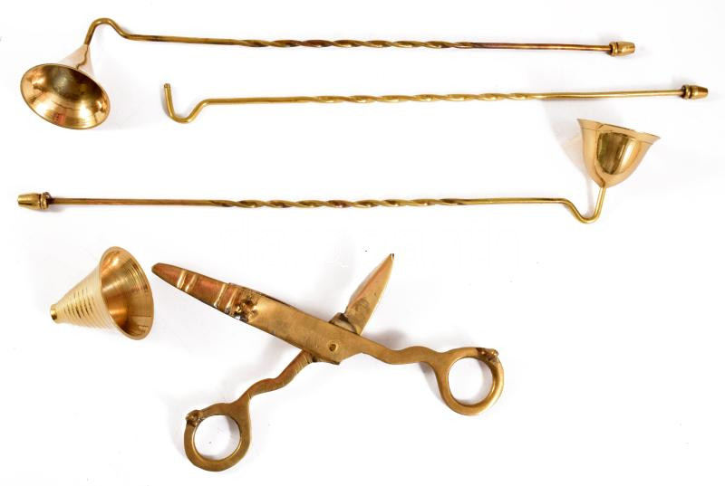 Bronz kanócvágó h: 14 cm + 3 darab gyertyakoppintó, h: 25 cm