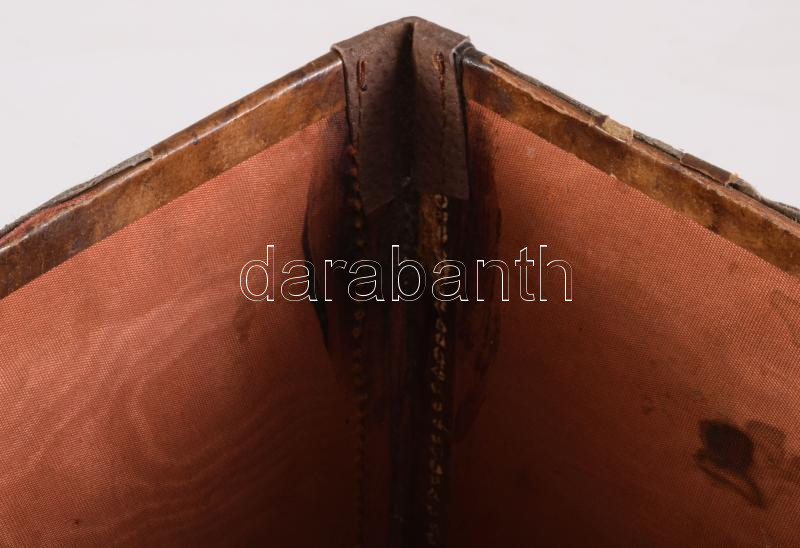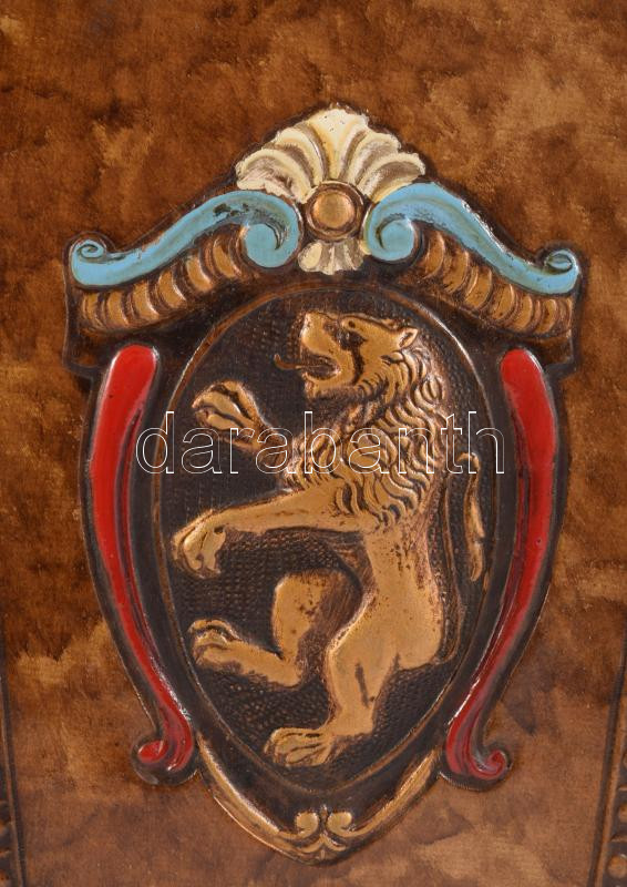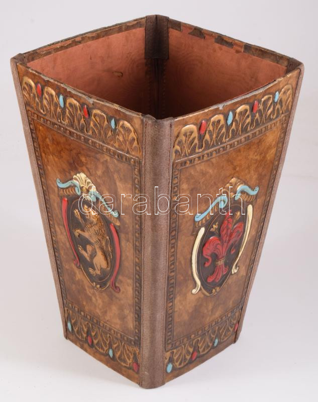 Címeres díszítésű bőrborítású esernyőtartó, kopással, m: 31 cm