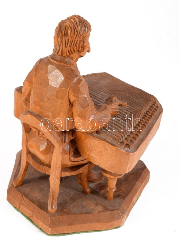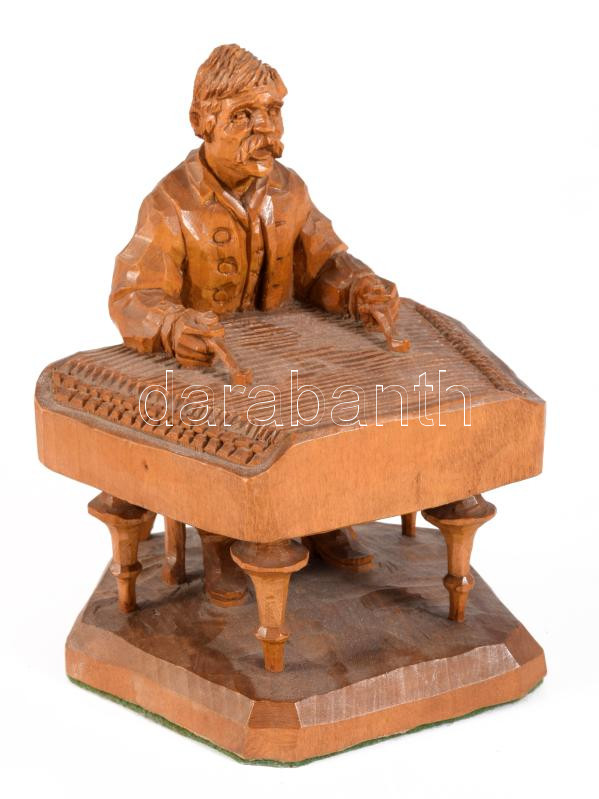 Citerás. Részletgazdag faragott fa szobor, m: 15 cm