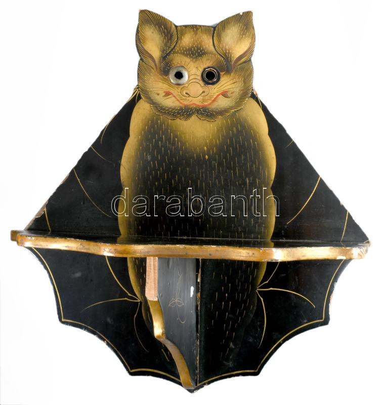 Denevéres fali polc, szobortartó Lakkozott fa, kézzel festett, kopással 28 cm