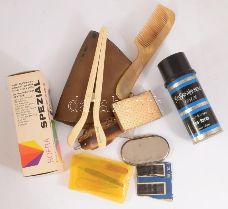 Doboznyi vegyes retro női pipere tétel, piperetükör, illatszeres üveg, szelence stb.
