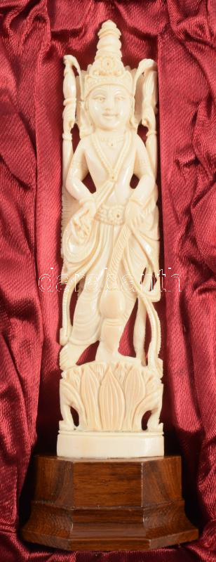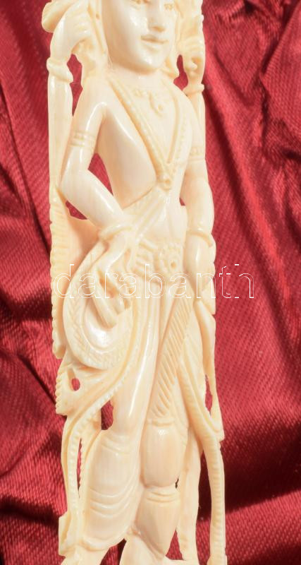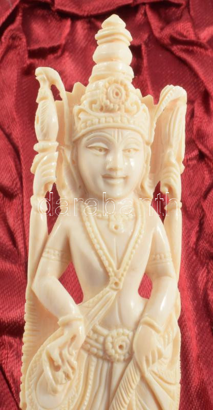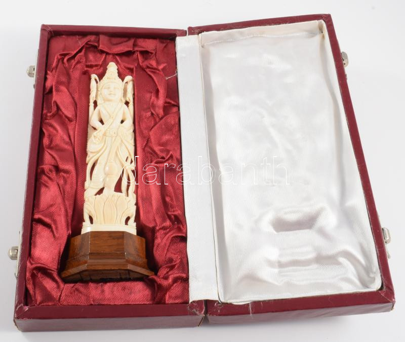 Keleti csont szobor, tartóban, fa talapzaton, m: 16 cm