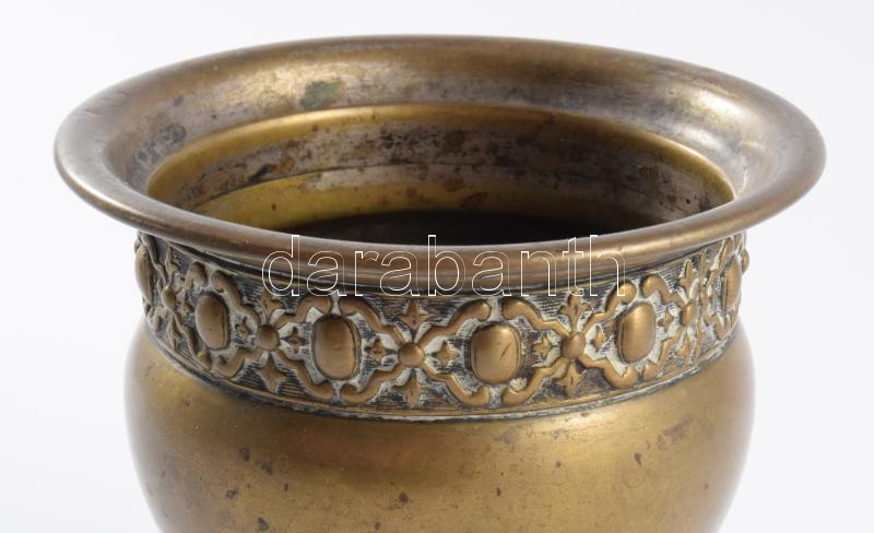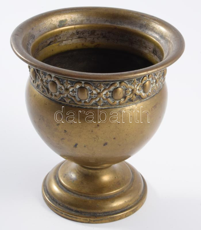 Szecessziós bronz kehely plasztikus díszítéssel, m: 10 cm