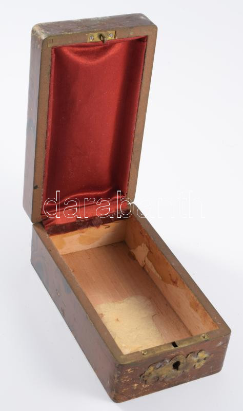 Szecessziós díszdoboz, kulcs nélkül, kopással, 14x8 cm