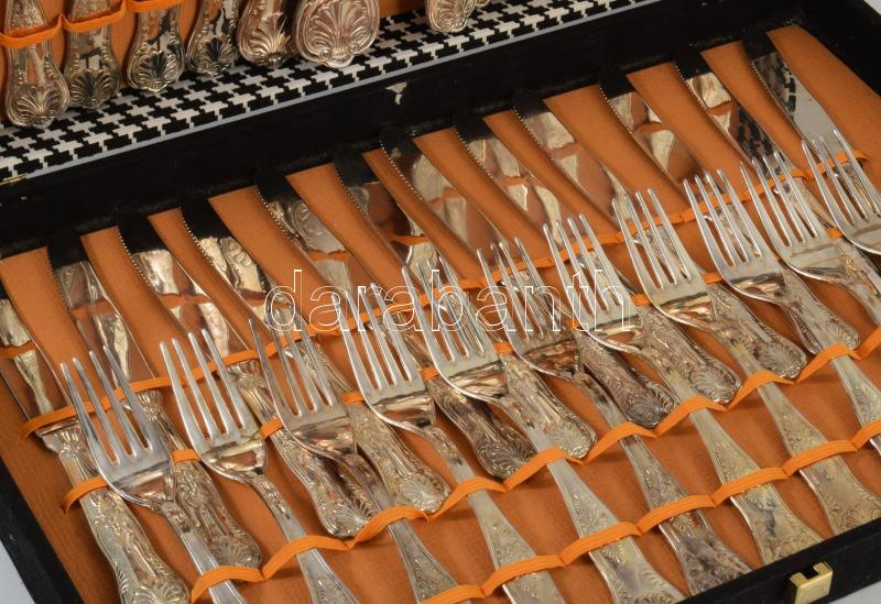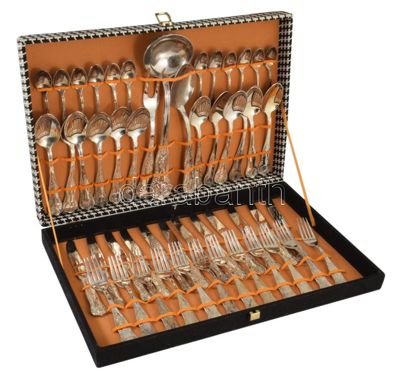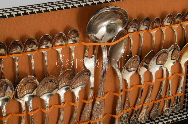 cca 1970 Olasz vastagon ezüstözött 12 személyes 51 részes evőeszköz készlet, jelzett, hiánytalan, díszdobozban.