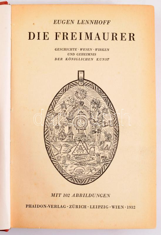 Lennhoff, Eugen: Die Freimauer. Mit 102 Abbildungen. Wien, Zürich, Leipzig, 1932, Phaidon Verlag. 365p. Kiadói egészvászon kötés, gerinc sérült, kopottas állapotban.