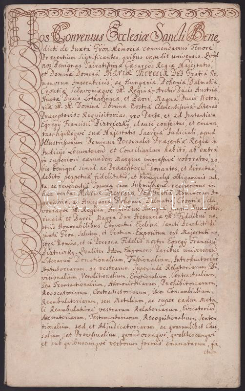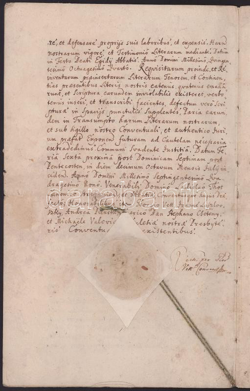 1749 A garamszentbenedeki konvent mint hiteles hely által megerősített irat 8 beírt oldalon papírfelzetes viaszpecséttel 1749 Document confirmed by the Hronsky Benadik convent as an authentic place, 8 inscribed pages with a paper-based wax seal