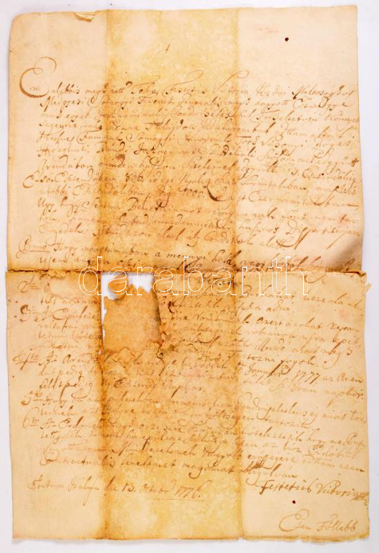 1776 Tállya, Festetich Viktória autográf levele tokaji szőlőjének és birtokának árendába adásáról. Sérült.