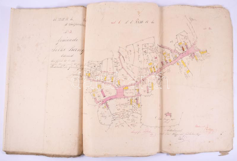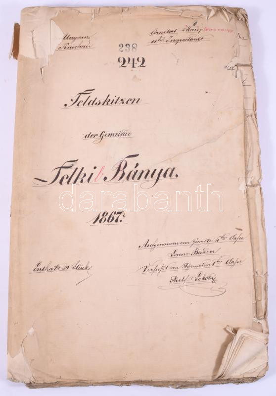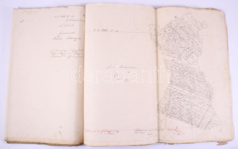 1867 Telkibánya község kataszteri térképei. Vilmány község felvételi előrajza. Szerkesztette Lorenz Baader,, Adolf Lokolay. 27 db kézzel rajzolt nagy méretű térképlap. 48x40 cm