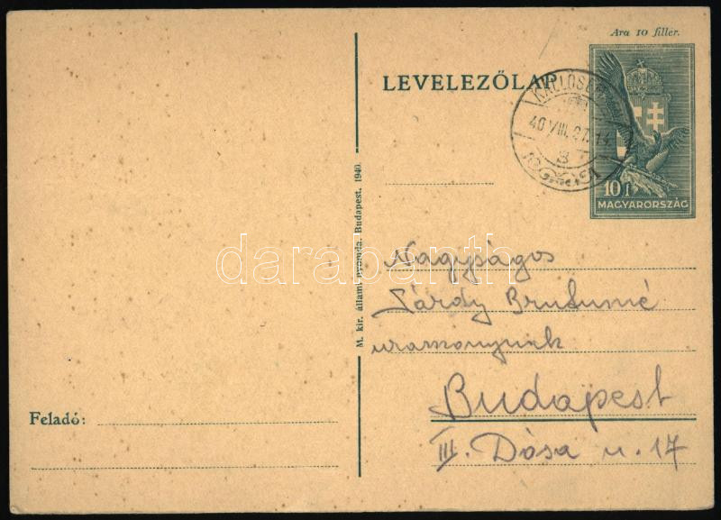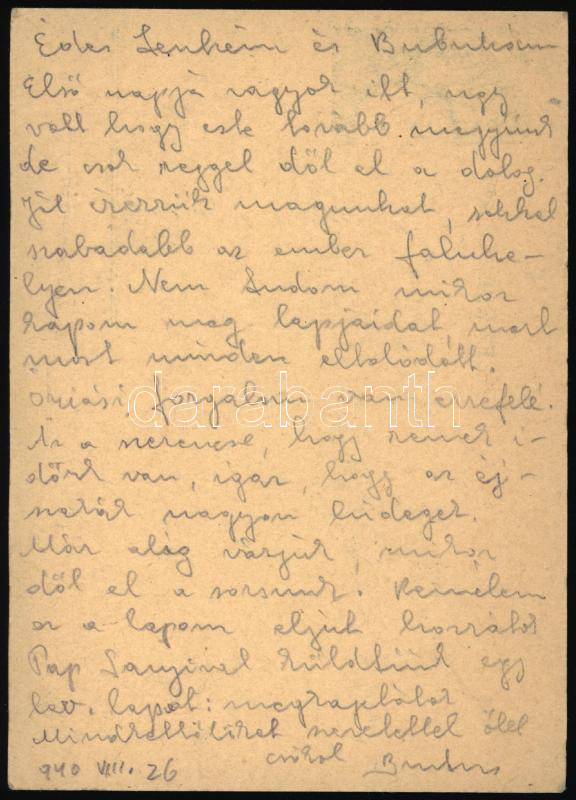 1938 Sárdy Brutus (1892-1970) festőművész, restaurátor autográf levelezőlapja feleségéhez, Kézdi-Kovács Lenkéhez, Kézdi-Kovács László (1864-1942) festőművész, műkritikus lányához, Kállósemjénről