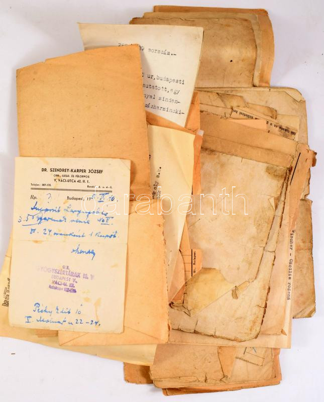 ca 1910-1960 Izraelita személy okmány hagyatéka, sokféle irat részben rossz állapotban