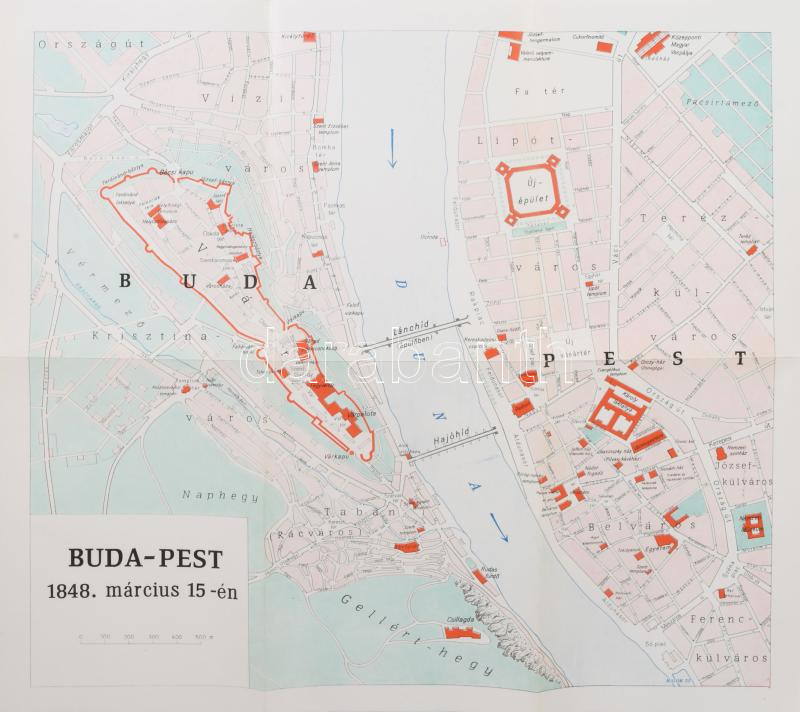 Budapest térképe házszámok megjelölésével és az utcák és terek betűrendes jegyzékével, készítette: Homolka József, RERPRINT!, 63×80 cm
