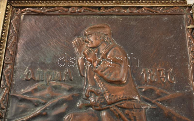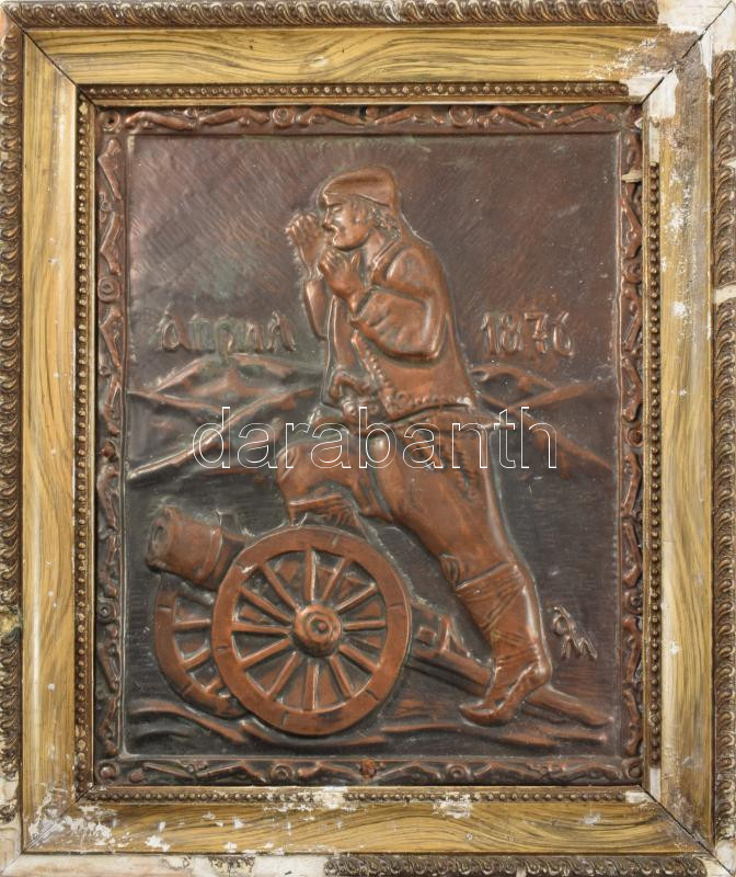 Ágyús. Rézlemez kép, sérült keretben, 24x19 cm