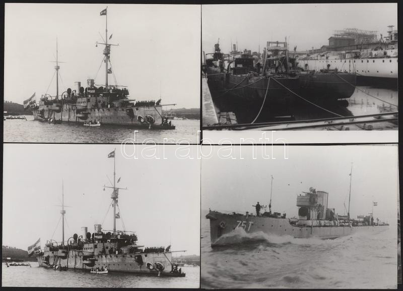 Császári királyi hadihajókról készült fotók modern nagyításat TB75, S.M.S. Kaiserin Elisabeth, Alpha, TB71F, S.M.S. Alpha. Helgoland és Balaton összesen 6 db fotó 18x14 cm