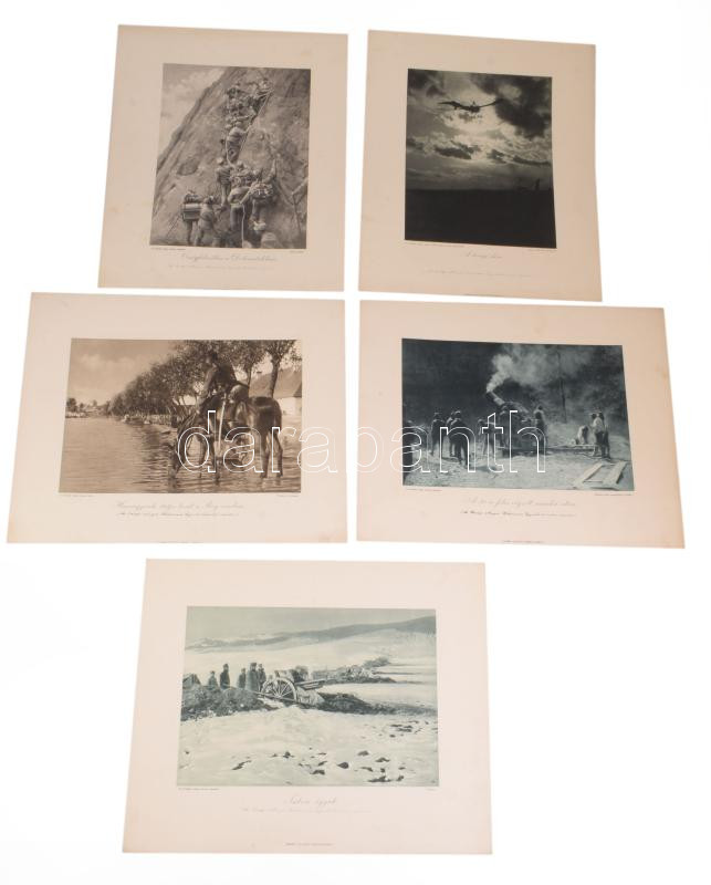 ca 1916 Az Érdekes Újság I. világháborús harctéri fotópályázata. 5 db fotó nyomat dekoratív feliratozott táblákon. 30x36 cm