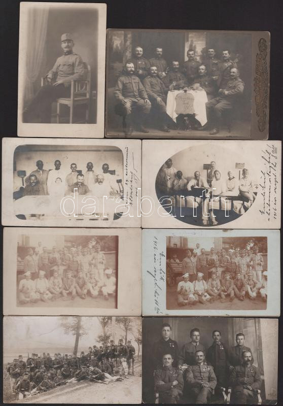 cca 1914-1918 Vegyes katonai fotó tétel, főként fotólapok + 1 db keményhátú fotó, 9×14 és 16,5×10,5 cm