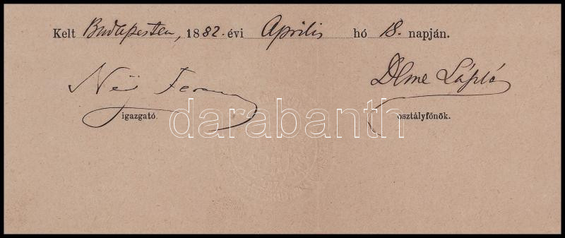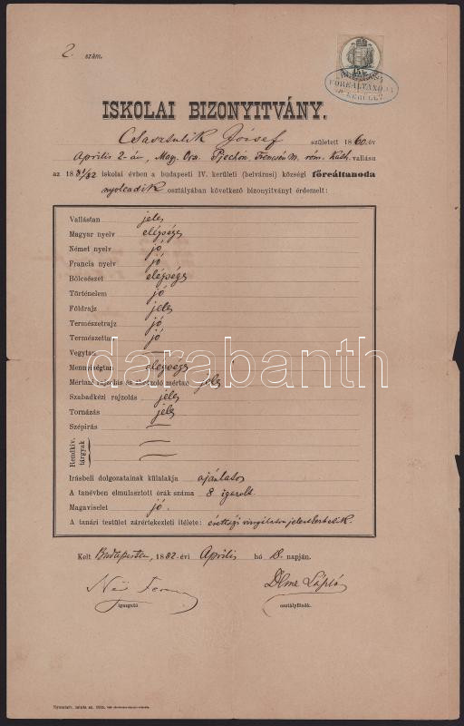 1880 Pilisi Ney Ferenc (1814-1889.) hírlapíró, színműíró, a pesti belvárosi reáliskola igazgatója autográf aláírása bizonyítványon