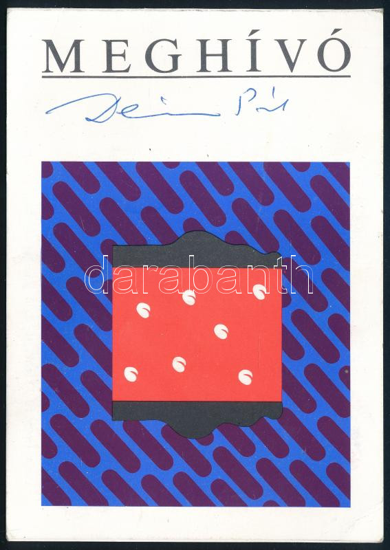1992 Deim Pál (1932-2016) festőművész autográf aláírása kiállítási meghívóján