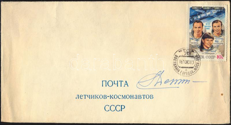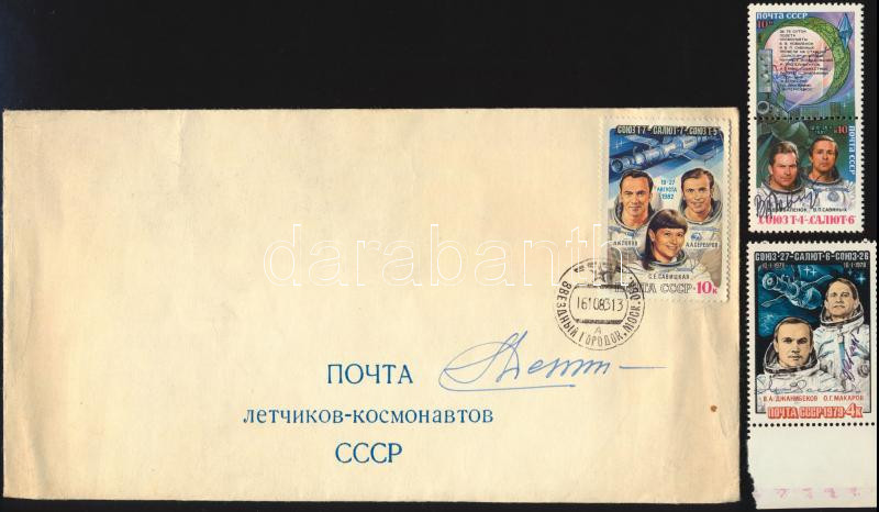Vlagyimir Dzsanyibekov (1942- ) orosz űrhajósok aláírása emlékborítékon /