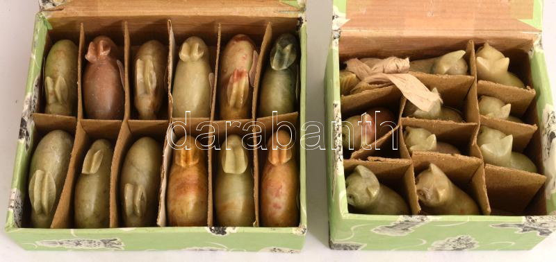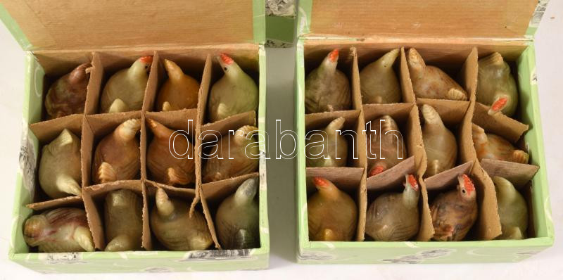 48 darab klf jáde figura, macska, nyúl, kakas, tyúk, m: 4,5 cm alatt