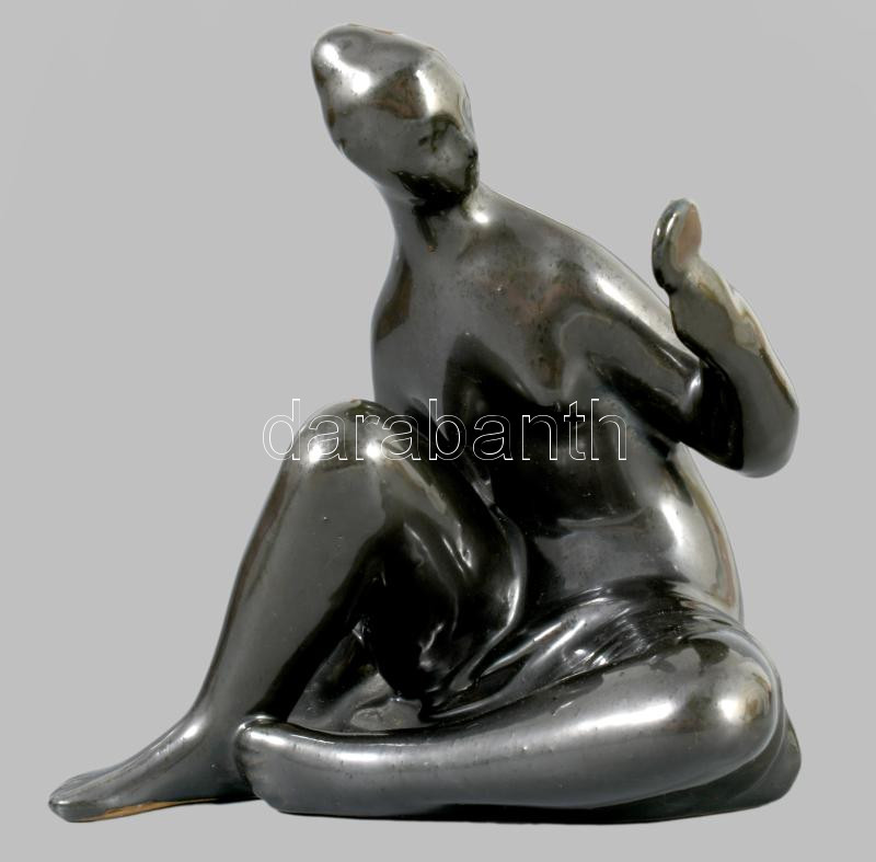 Art deco stílusú tükörbe néző nő, kerámia, jelzés nélkül, m: 17 cm
