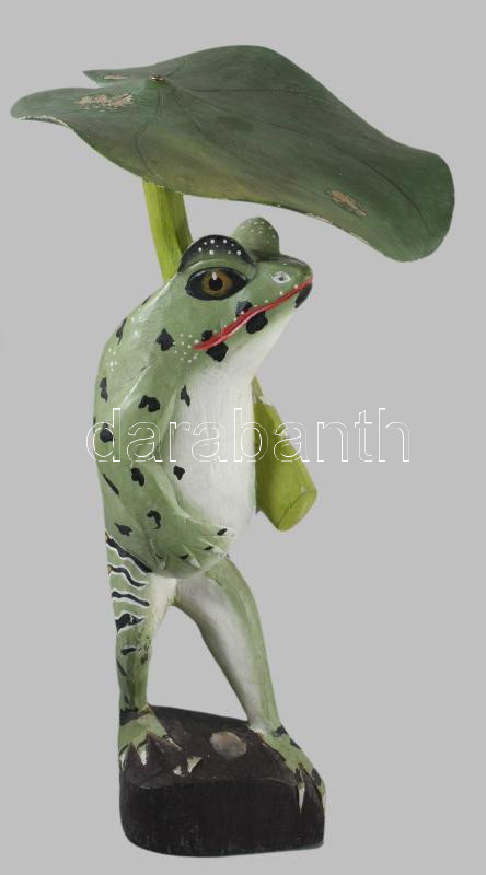 Levelibéka. Faragott, festett fa szobor. 42 cm