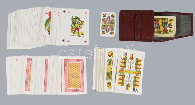 5 pakli kártya, közte mini magyar kártya