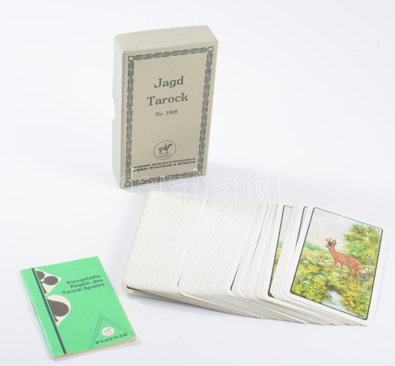 Piatnik Jagd Tarock (vadász tarokk) kártya, 56 lapos (komplett), eredeti dobozában, német nyelvű leírással, jó állapotban