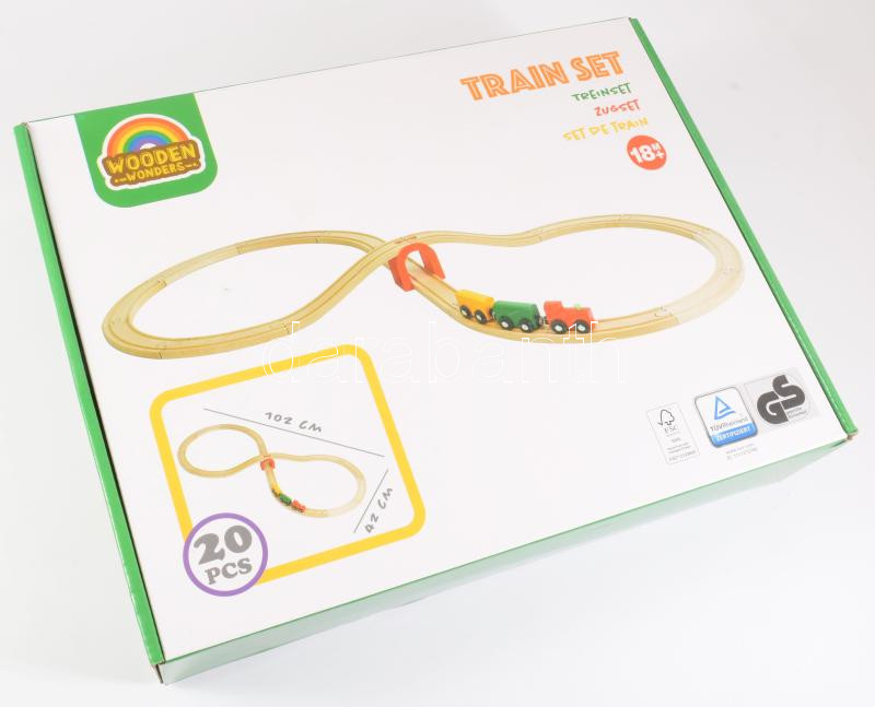 Wooden Train Set fa vonatpálya játék bontatlan dobozában, 29x39 cm