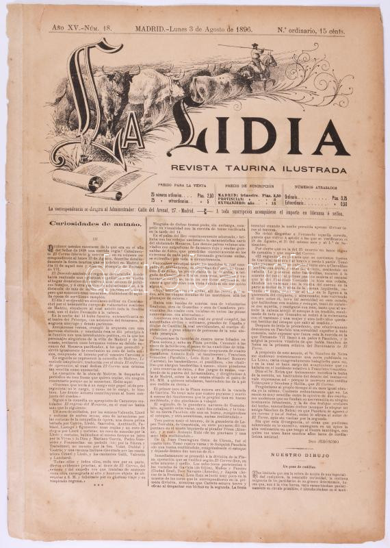 1896 Bikaviadalt ábrázoló nagy méretű litográfia. - Spanyolország, La lidia revista taurina ilustrada c. magazin képe. 56x41 cm, jó állapotban / large lithograph about bull fights from the 1890-s. 56x41 cm